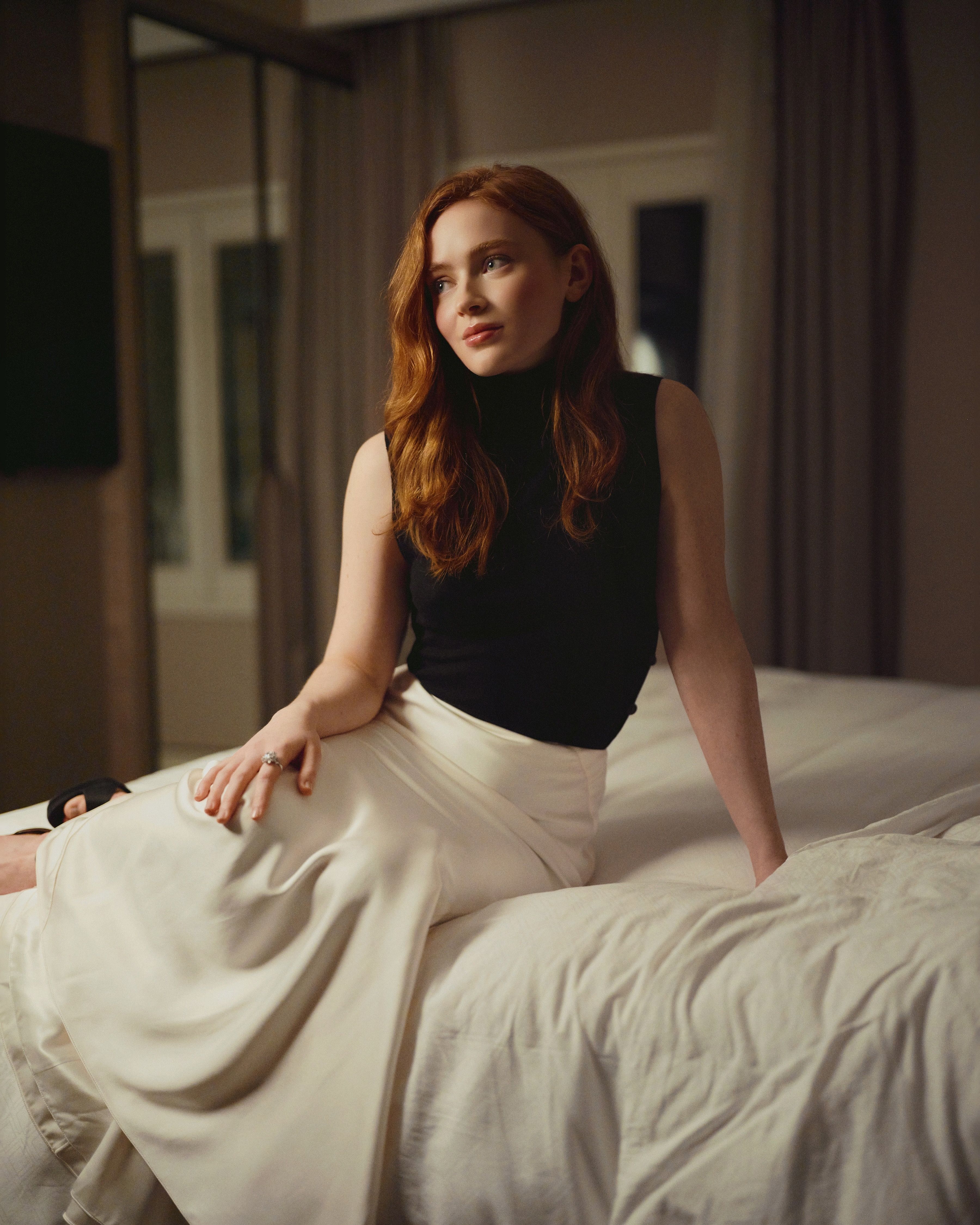坐在床上